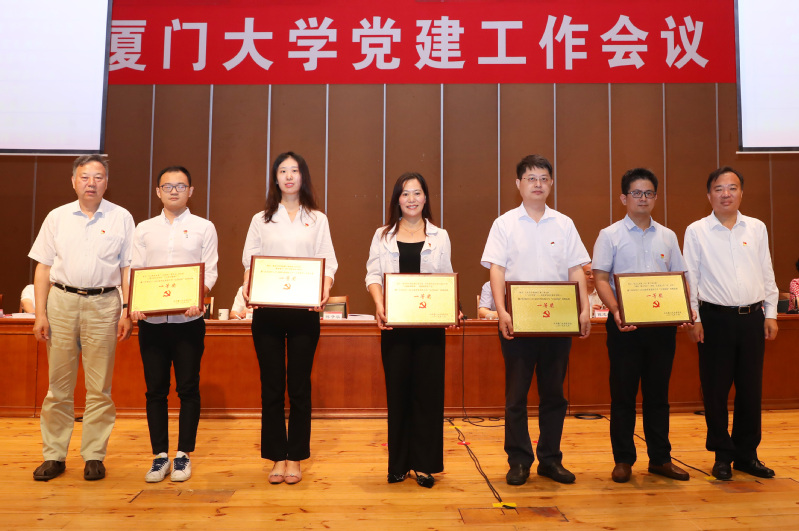 会议还对厦门大学2017-2018学年党支部工作“立项活动”优秀成果进行了表彰。校领导为30个获奖项目颁发奖牌。