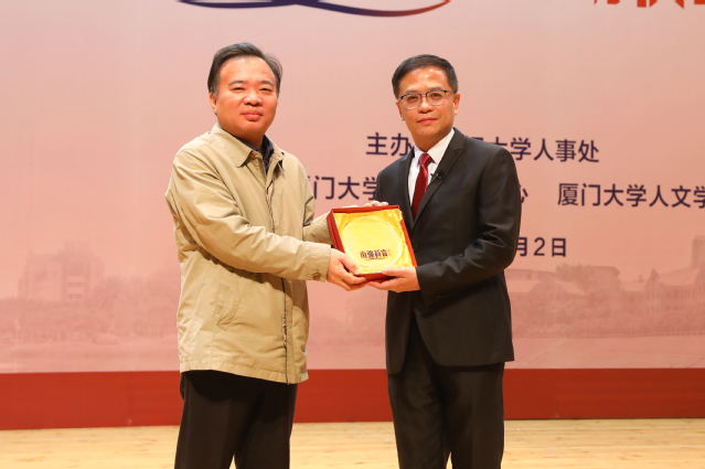 1月2日晚,厦门大学南强新睿讲坛启动仪式暨首场讲座在科学艺术中心音乐厅举行,“长江学者”特聘教授、人文学院院长朱菁应邀作首场报告。校党委书记张彦在启动仪式上致辞并为朱菁颁发纪念牌。副校长江云宝主持启动仪式,校党委常委、宣传部部长、教师工作部部长徐进功出席。人事处处长吴立武主持首场讲座。