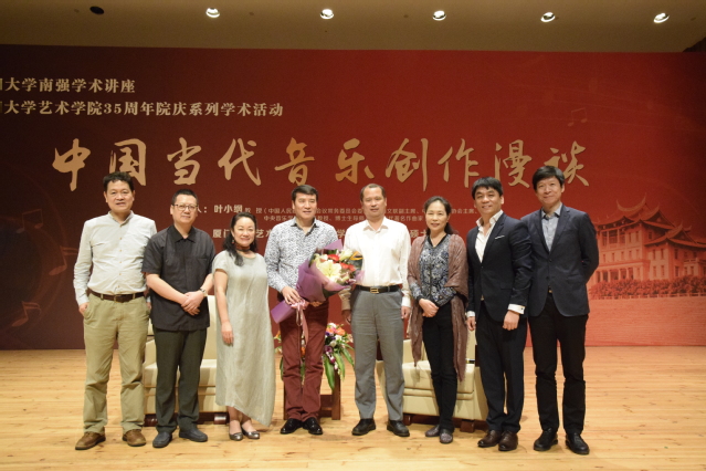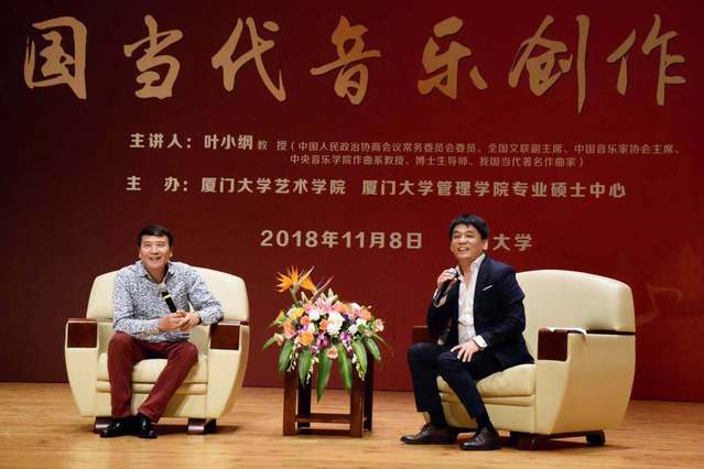 11月8日下午,作为厦门大学艺术学院35周年院庆系列学术活动之一,艺术学院特邀全国政协常委、全国文联副主席、中国音乐家协会主席、中央音乐学院作曲系教授、博士生导师叶小纲教授,在科艺中心音乐厅举办南强学术讲座--《中国当代音乐创作漫谈》。校党委副书记林东伟,福建省音乐家协会副主席、秘书长唐晓燕,集美大学音乐学院院长臧艺兵,吉林艺术学院音乐学院副院长元杰,厦门爱乐乐团团长方翊,厦门大学艺术学院副院长赵艳方等领导和嘉宾参加了活动。