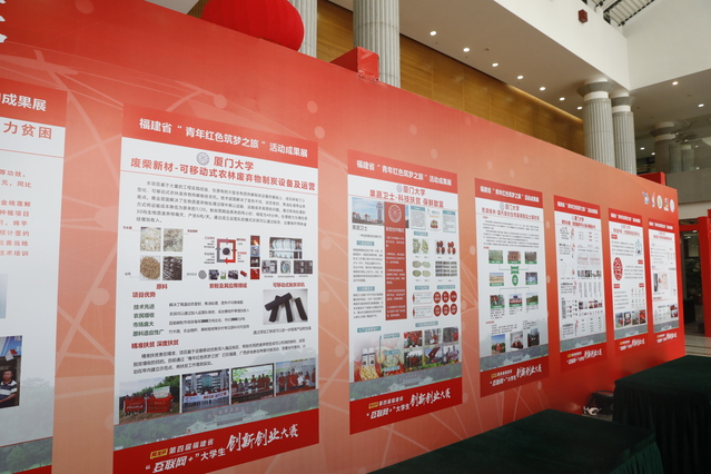 成果展展示了福建省和40所高校深入贯彻落实习近平总书记给第三届中国“互联网+”大学生创新创业大赛“青年红色筑梦之旅”大学生重要回信精神,组织开展第四届福建省“互联网+”大学生创新创业大赛“青年红色筑梦之旅”活动,深入革命老区和贫困地区,服务乡村振兴,助力脱贫攻坚,取得的活动成果及经验做法,同时展示了参加省赛现场总决赛的“青年红色筑梦之旅”项目。
