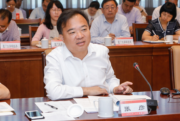 张彦强调,在迈向建设世界一流大学的新征程中,厦门大学要更好地服务“海丝核心区”建设,努力把自身的发展与福建“两大都市圈”和“两大协作区”的决策部署紧密结合起来,全面融入和服务厦门,继续以一流的党建、一流的人才培养和科技创新成果、一流的大学文化为厦门市建设增光添彩,努力为厦门建设“五大发展”示范市贡献新的力量。