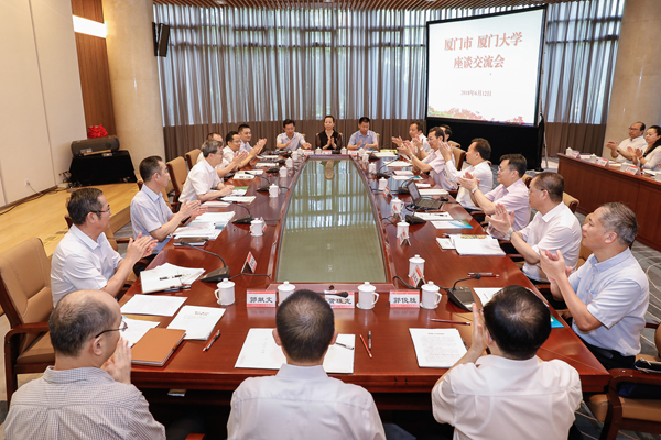 厦门市教育局、科技局、财政局、规划委、国土房产局、建设局,思明区、翔安区及我校相关部门领导参加座谈。