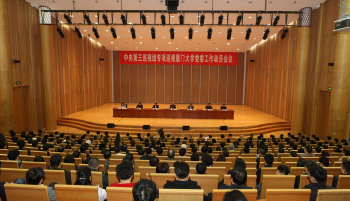 根据中央关于巡视工作的统一部署,2017年3月9日下午,中央第三巡视组专项巡视厦门大学党委工作动员会召开。会前,中央巡视工作领导小组办公室负责同志向厦门大学党委书记张彦、校长朱崇实传达了习近平总书记关于巡视工作的重要讲话精神。会上,中央第三巡视组组长刘维佳就即将开展的专项巡视工作作了讲话,中央巡视工作领导小组办公室负责同志就配合做好巡视工作提出要求。张彦主持会议并作表态讲话。