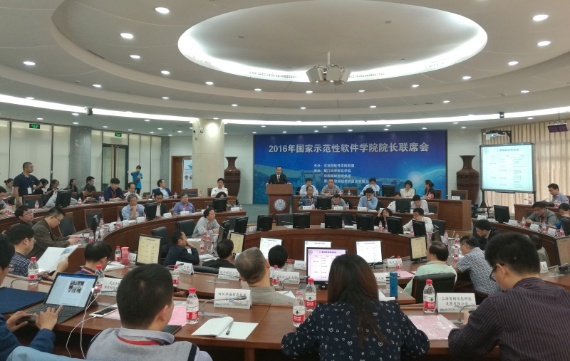 11月13日,2016年国家示范性软件学院院长联席会在科艺中心举行。联席会由示范性软件学院联盟主办,厦门大学软件学院、中软国际教育集团、厦门中软卓越教育服务有限公司共同承办。出席联席会的有教育部高教司理工处调研员侯永峰、示范性软件学院联盟理事长卢苇、我校党委副书记赖虹凯、深圳软件园管理中心主任徐绍禹,以及来自全国36所国家示范性软件学院的院长、书记和企业界代表和部分软件学院老院长、老书记共96人。会议由我校软件学院院长廖明宏主持。