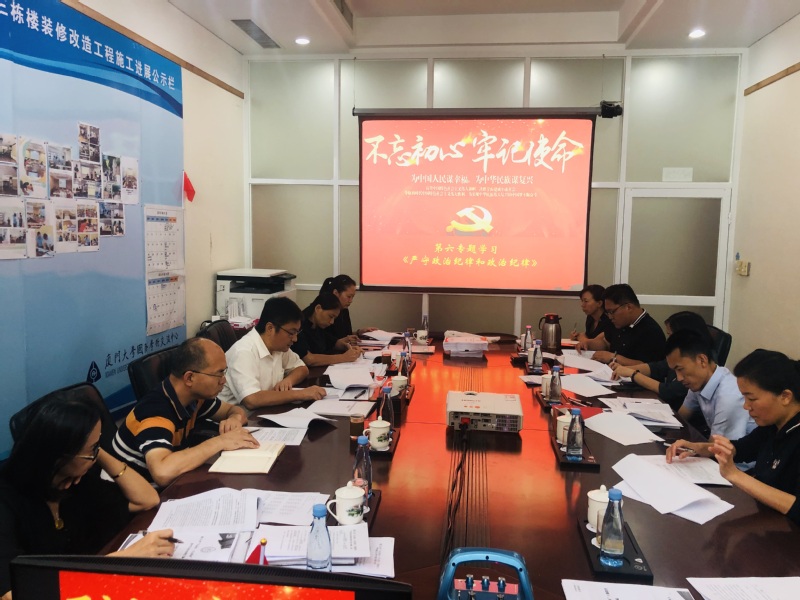 10月21日下午,“中心”党总支委员及各支部书记围绕“严守政治纪律和政治规矩”专题进行“不忘初心、牢记使命”主题教育第六次集中学习研讨。