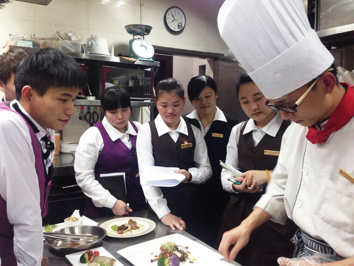 为了更好的秉承“服务 质量 发展 创新”的理念,餐饮管理部西餐厅厨师团队会定期推出全新的菜品,并以不同的烹饪方式呈现西方美食文化。在新菜品呈现给顾客之前,部门会对西餐厅员工进行一系列的培训,通过严格的培训使员工掌握新菜品的相关信息,从而为顾客提供更加专业的服务。