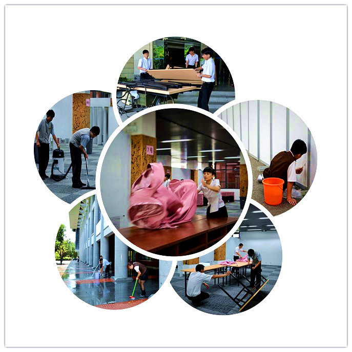 冷餐会开始前一周,作为此次任务的主力军,客房管理部即进入了备战状态。按照精心策划的严密方案,场地布置与卫生工作率先展开。咖啡厅的大姑娘小伙子们士气高昂,顶着炎炎烈日,在三十八、九度高温的校园里忙碌起来,冲洗科艺中心外侧长廊、清洁会场上千平米地毯、搬运餐台近百张用桌。部门下属的科艺咖啡厅,因其多样可口的餐品饮品和悠闲舒适的自然环境,而在厦大内外小有名气。每逢节假日更是有着非常可观的营业收入。但是,为了保证由后勤集团供应的菜肴送达现场后有足够的空间进行操作,“中心”决定与端午节假期冲突的两天冷餐会进行时,科艺咖啡厅暂停营业,转作为临时备餐场地。接到通知后,部门自上至下坚决拥护“中心”的决定,以高度的政治觉悟展现了部门“讲政治、顾大局”的先进性和全局观。
