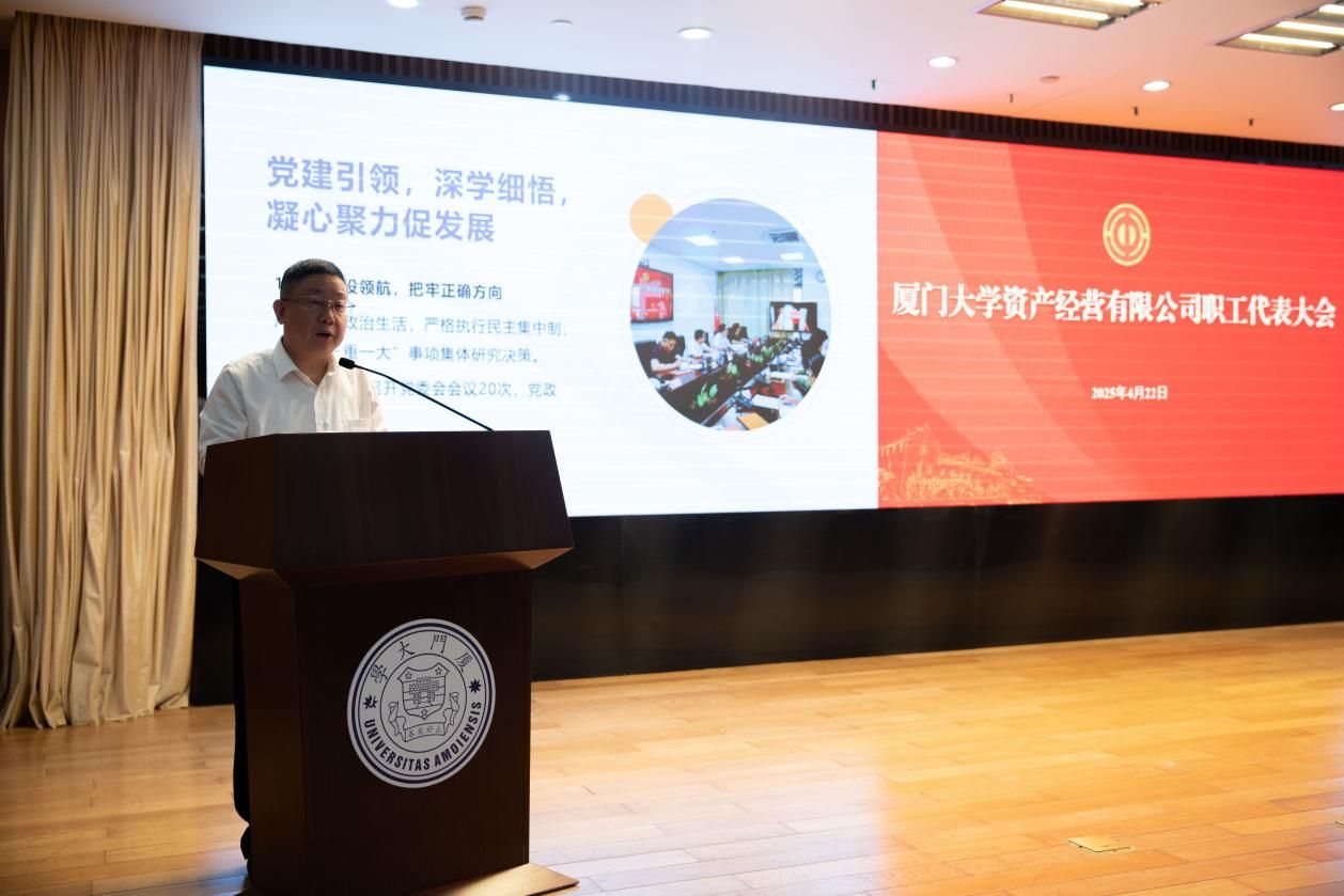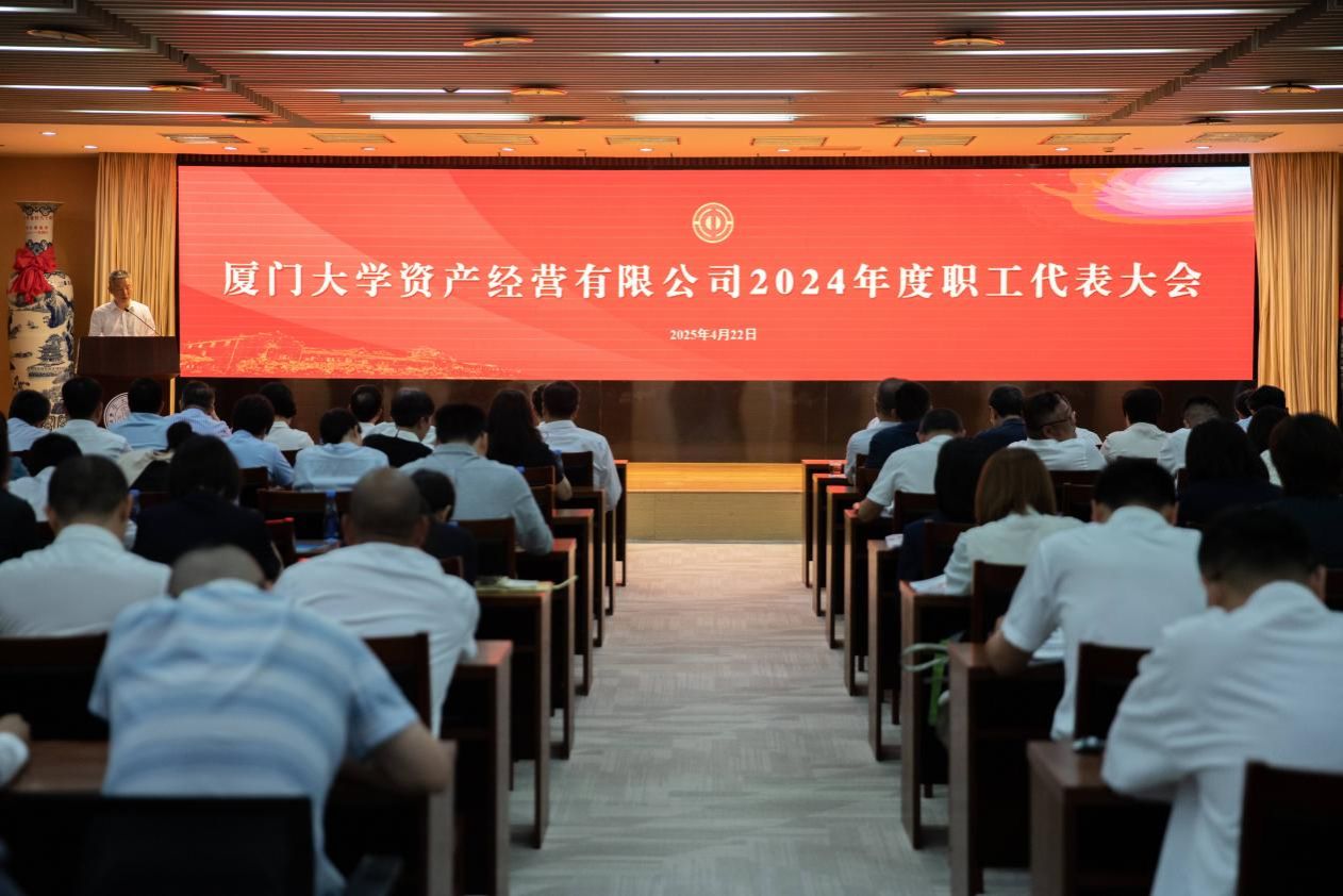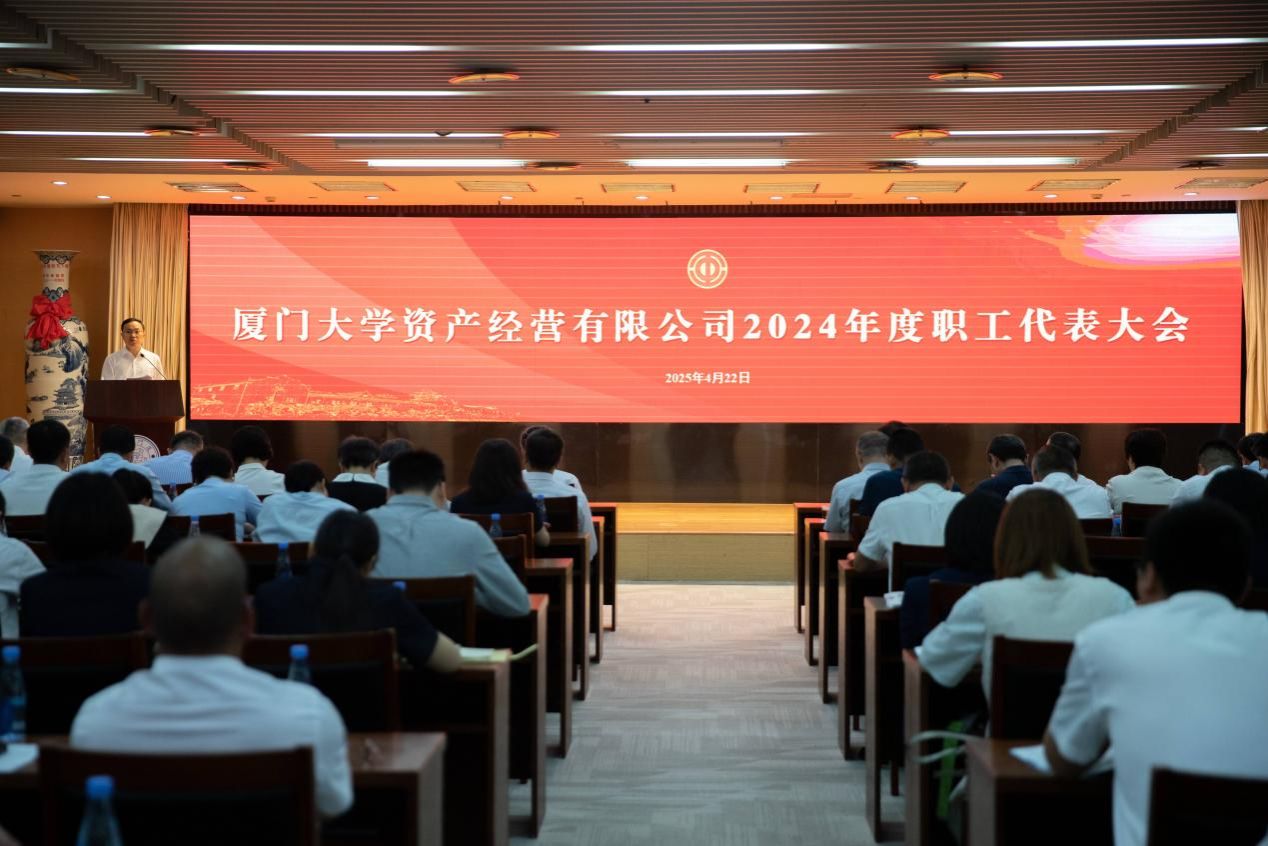 2025年4月22日上午,厦门大学资产经营有限公司(以下简称资产公司)在科学艺术中心召开2024年度职工代表大会。学校基层党建工作联络员谢银辉,资产公司党委书记伍伟平,资产公司总经理、产业技术研究院(以下简称产研院)院长沈小平,资产公司关工委常务副主任郑建华及资产公司、产研院党政领导班子成员,资产公司职代会代表、党支部书记、企业负责人等参加会议。资产公司党委副书记、工会主席陈伟主持大会。