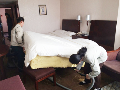 客房经过长期的经营使用,房内卫生死角积累出了些许“不速之客”。床底自然是积累最多的地方,要清理,首先要把床这个庞然大物搬开,每间房间配备两名服务员,每个人都使出了吃奶的劲才顺利完成。寒冷的冬季,个个却是满头大汗,气喘吁吁。