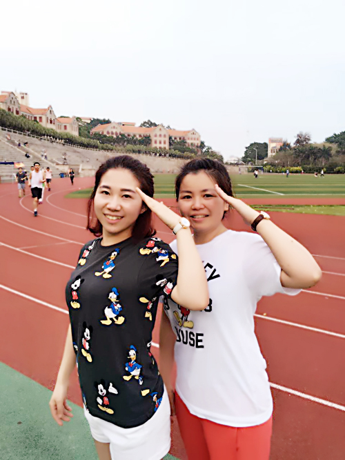 只吃不动也不行,上弦场自然少不了她们运动的身影。她们说,生命在于运动,锻炼了身体,舒缓了身心,在工作中才能展现出更加饱满的精神状态。也正因如此,部门许多下了班就懒得再动的青年男女,在这对“姐妹花”的带动下一起加入了锻炼大军。大伙儿一起跑跑跳跳,不仅为身体充了电、练就出健康的体魄,更是在生活中增进了同事间的情谊、增强了团队的凝聚力。