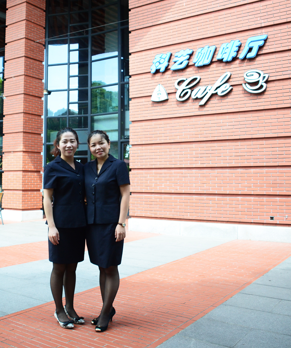 惬意舒适的环境,地道美味的餐品,大胆尝试的创新…今天的科艺咖啡厅已经在厦门大学校内及周边小有名气。每逢周末或节假日及寒暑期,能同时容纳二百余人的场地更是常常一座难求。在“中心”和部门的大力支持与推动下,这对“姐妹花”和她们的小伙伴,正在创造科艺咖啡厅崭新的一页。人们常说,机会总是留给有准备的人。工作中任劳任怨、积极进取的表现使得她们得到了大家一致的赞许与认可,同时她们也肩负起重任,从基层走上了管理岗位。晋升并没有让她们忘记自己的初衷,她们说,是“中心”给了自己发展的平台,是领导和同事的信任激励着自己进步成长,唯有以感恩之心、感激之情将全部精力投入到工作中去,才是对“中心”对每一位帮助过自己的人,最好的回报。