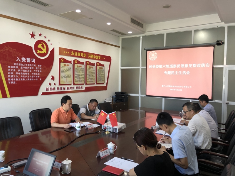 2021年8月26日上午,国际学术交流中心党总支召开巡察反馈意见整改落实专题民主生活会。第二巡察组组长梁卫中到会指导,公司班子成员参加会议,工会主席、办公室主任、党务秘书、团委书记等列席会议。会议由公司党总支书记陈东军主持。