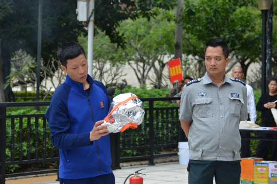 在消防设备设施操作讲解环节,讲解人员进行微型消防站实操展示,对灭火器、面罩等消防工具使用进行详细讲解,并组织职工代表按照“提、拔、握、压”的要领,使用灭火器现场开展消防灭火演练。
