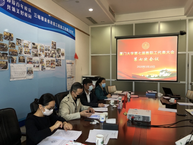 3月10日,厦门大学第七届教职工代表大会第七次会议召开,听取讨论学校2019年工作总结和2020年工作计划要点,听取讨论2019年预算执行、财务决算和2020年预算情况。会议以网络视频的形式进行,副校长邓朝晖担任大会秘书长并主持会议。