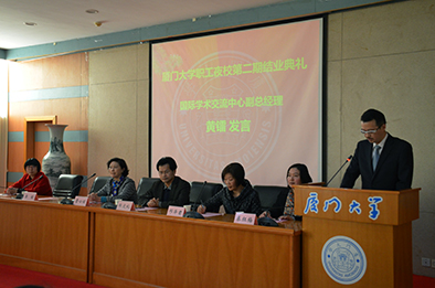 120下午,“为民惠民感恩奉献”--厦门大学职工夜校第二期结业典礼,在主楼220报告厅举行。厦门大学副校长、职工夜校校长詹心丽出席结业典礼并发表讲话。校工会、团委等有关单位领导与百名本期培训学员代表,共同参加了结业典礼。“中心”常务副总经理、工会主席黄镭,代表职工夜校组织单位在结业典礼上发言。