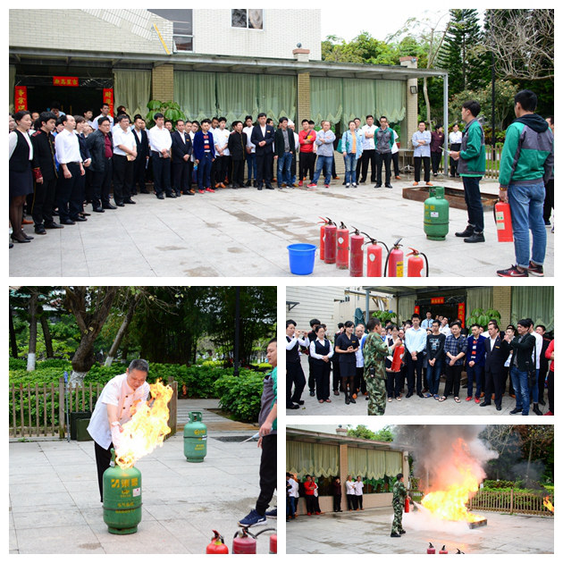 在安全常识讲解结束后,实际演练部分在中餐厅教工广场进行。讲解员分别对使用湿毛巾和灭火器,处置燃烧中的液化气罐,分步骤再一次进行了详细、规范的说明与示范。随后,在燃气公司工作人员的的指导下,全体员工分别使用湿毛巾和灭火器,进行了处置燃烧液化气罐的实际演练。