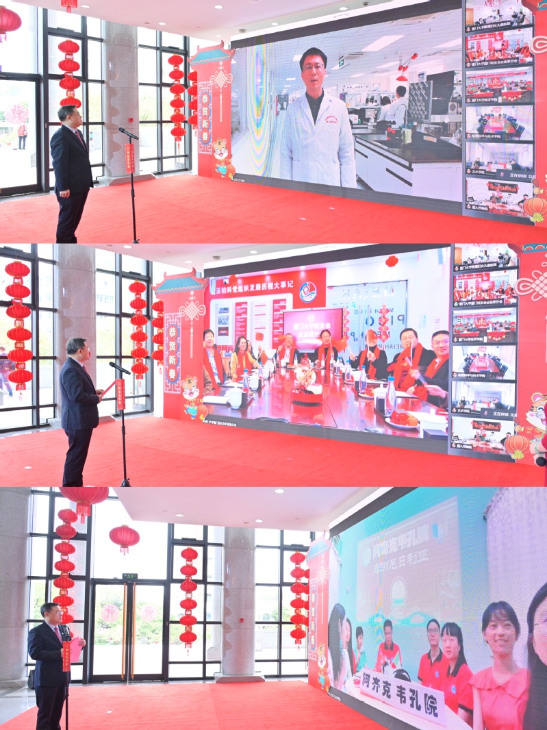“未来我们将继续不忘初心,砥砺前行!”“祝愿所有人厦大人新春快乐,万事胜意!”“我们在这里一切都好,请学校放心!”……公共卫生学院陈毅歆教授实验室、厦门校友会企业家分会、尼日利亚纳姆迪·阿齐克韦大学孔子学院通过视频连线主会场,齐聚“云端”抒发新春祝福。