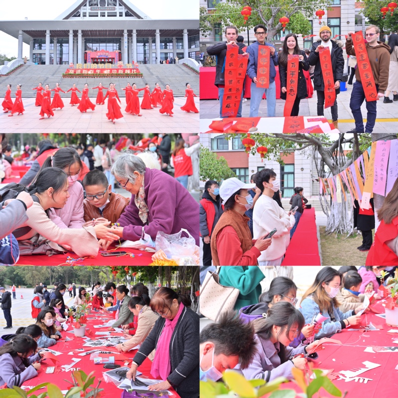 今年,学校以“奋进新百年、建功新时代”为主题,严格落实疫情防控规定,采取线上线下相结合的方式,继续组织开展“我们的节日·春节”系列活动。在嘉庚广场,“虎年迎春 传承民俗”民俗体验活动与新春茶话会同期举行,副校长邓朝晖宣布游园会开始。现场邀请书画专家、剪纸传人等写春联、剪纸,为师生送祝福,组织舞狮表演、体育文艺表演营造喜庆气氛,组织谜语擂台等环节,吸引师生互动参与,加深师生对楹联、剪纸、灯谜等传统文化的认知认同,营造积极向上、热烈祥和的节日氛围。