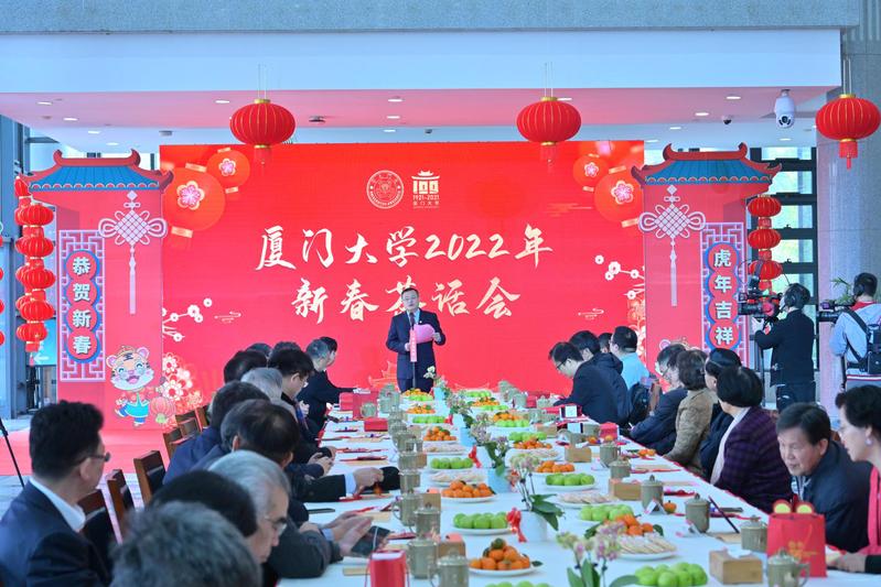 1月17日上午,厦门大学2022年新春茶话会举行。为落实常态化疫情防控总体要求,茶话会以线上和线下相结合的方式举行,在科学艺术中心设主会场,各单位设分会场,主会场和分会场的师生、校友通过云端联结,共贺新春佳节,共叙美好未来。校党委副书记、校长张荣致辞。