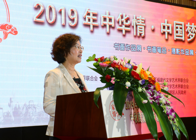 近日,2019“中华情·中国梦”中秋展演系列活动在厦门举行。9月11日-15日,本届展演活动的美术书法作品展、慰问演出等活动走进厦大。中国文联党组成员、副主席、书记处书记陈建文,全国人大华侨委委员、省人大书画院院长叶双瑜,厦门市委常委、宣传部部长叶重耕,厦门市副市长国桂荣,厦门大学党委副书记赖虹凯,厦门大学党委常委、宣传部部长徐进功,厦门市文联主席舒婷等出席活动。