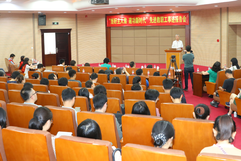 邓朝晖在讲话中指出,组织先进教职工事迹报告会是贯彻落实习近平总书记关于劳动和劳动模范重要论述的具体行动,是倡导勤奋劳动、创新工作、营造良好舆论氛围的重要举措。学习劳模精神、劳动精神、工匠精神,实际上是通过学习他们的事迹,领略他们积极的态度、高尚的情操,感受他们乐于奉献不计回报的涵养,默默耕耘不慕名利的人生观和世界观。她希望以本次报告会为契机,在全校陆续开展向劳模学习、先进学习的主题宣传活动,在学校的各个岗位上营造劳动光荣的校园风尚和精益求精的敬业风气,激发和调动更多的教职工工作热情和干事创业积极性,以实际行动,迎接新中国成立70周年,为学校“双一流”建设作出新的贡献。