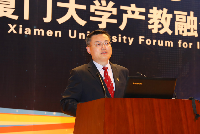 张荣代表学校向各位来宾的到来表示欢迎与感谢,并介绍了我校深化产教融合的缘起与发展历程。他指出,一代代厦大人在校主陈嘉庚的“教育救国”理想和“实业兴国”目标指引下,始终坚持把服务国家重大战略和地方经济社会发展需求与培养高深人才相结合,深化高层次创新型人才供给侧改革,“师生共创,人技同输”,走出了一条具有厦大特色的产教融合发展之路。