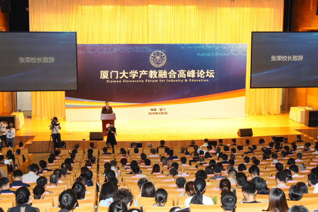 为贯彻落实国务院《关于深化产教融合的若干意见》和全国教育大会精神,4月5日下午,厦门大学产教融合高峰论坛在科学艺术中心隆重召开。主管部门领导,全国逾百家科技型企业代表,学校有关领导、院士、科研骨干、师生代表等近600人齐聚厦大、共襄盛举。我校校长张荣,厦门市科技局巡视员(主持工作)卢琳兵在论坛致辞。副校长江云宝主持论坛。