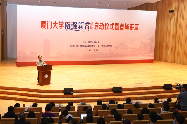 1月2日晚,厦门大学南强新睿讲坛启动仪式暨首场讲座在科学艺术中心音乐厅举行,“长江学者”特聘教授、人文学院院长朱菁应邀作首场报告。校党委书记张彦在启动仪式上致辞并为朱菁颁发纪念牌。副校长江云宝主持启动仪式,校党委常委、宣传部部长、教师工作部部长徐进功出席。人事处处长吴立武主持首场讲座。