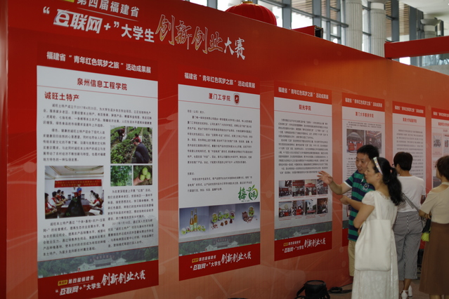 第四届福建省“互联网+”大学生创新创业大赛省赛决赛开赛在即,8月27日早上,福建省“青年红色筑梦之旅”活动成果展在科艺中心开展。