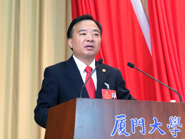 张彦同志代表中共厦门大学第十届委员会向大会作题为《奋进新时代筑梦新征程 为加快建设中国特色世界一流大学而不懈奋斗》的报告。报告共分五个部分:一、过去五年的主要工作和事业发展成就;二、全面开启新时代一流大学建设新征程;三、坚持内涵式发展,全面提升办学能力;四、深化综合改革,激发创新发展活力;五、全面加强党的领导,以一流党建引领一流大学建设。