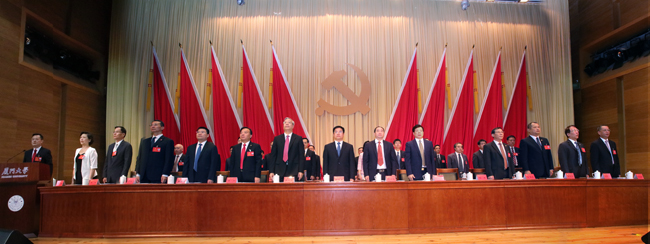 当天的会场洋溢着热烈、民主、团结、奋进的气氛。主席台上方悬挂着“中国共产党厦门大学第十一次党员代表大会”的会标,后幕正中是镰刀和锤头组成的党徽,10面鲜艳的红旗分列两侧,会场后面伫立的展板上书写着“奋进新时代,筑梦新征程,为加快建设中国特色世界一流大学而不懈奋斗!”的大幅标语。