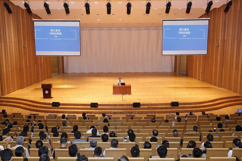 在两个多小时的报告中,邹振东将理论与案例相结合,深入浅出地解读了舆论的“规则”“定理”“性别”等要素,通过影像、数据、故事等方式将“解读中国舆论的工具”一一说明,厘清误区,讲明规律,为与会人员上了一堂“舆论是有方法的,传播是有力量的”媒介素养提升课。