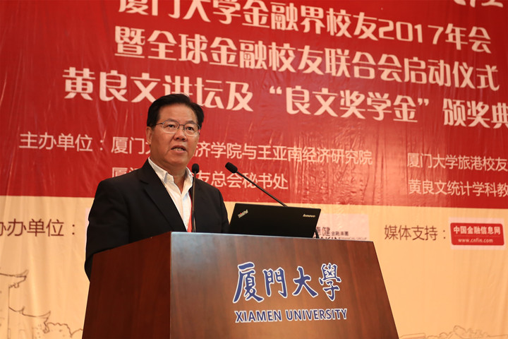11月11日,由厦门大学经济学院与王亚南经济研究院、厦门大学校友总会秘书处、厦门大学旅港校友会金融分会、黄良文统计学科教育基金会主办,厦门大学经济学院金融系与统计系、厦门大学富邦两岸金融与产业研究中心承办,沪港地产资本有限公司协办,德健金融集团支持的“新时代中国金融改革与风险管理论坛暨厦大金融界校友2017年会”在科艺中心音乐厅召开。
