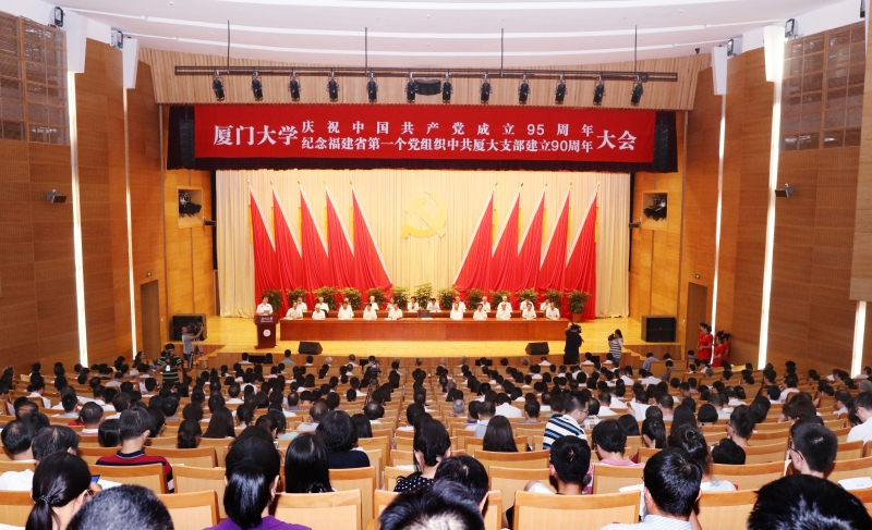 7月1日下午,学校在科艺中心隆重召开厦门大学庆祝中国共产党成立95周年暨纪念福建省第一个党组织中共厦门大学支部建立90周年大会,表彰先进、树立典型、鼓舞斗志、凝聚人心,进一步加强学校党的建设,进一步推动学校事业科学发展。福建省委常委、组织部部长王宁,厦门市委常委、组织部部长陈秋雄代表省委、市委出席大会。校党委常委、校行政领导、校长助理、学校老领导、党员院士、文科资深教授、解放前参加工作的老党员代表在主席台就座。大会由校长朱崇实主持。