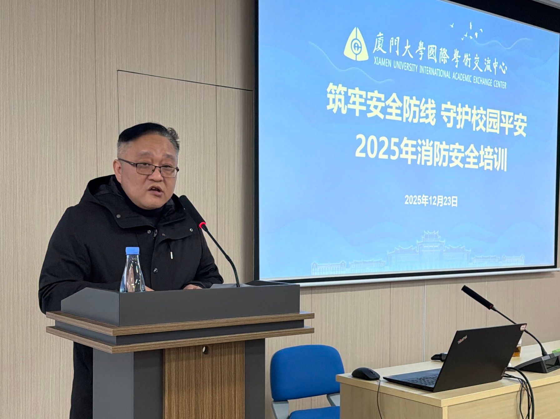 为进一步筑牢校园安全防线,切实提高员工的应急避险与自救互救能力,12月23日,厦门大学国际学术交流中心有限公司(以下简称中心)在蔡清洁楼开展2025年冬季消防安全培训及应急疏散演练。中心副总经理张浩及各部门员工共100余人参加培训。