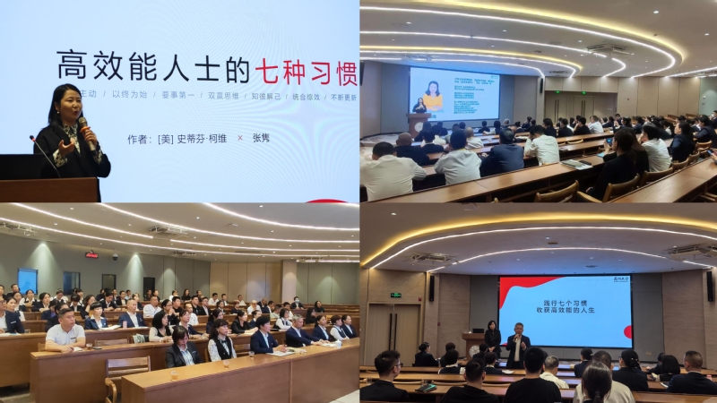 中心人力质培部门邀请校外资深讲师张隽,为员工讲解经典管理书籍《高效能人士的七个习惯》,通过结合各部门实际工作,传授实现长期、可持续成功的关键习惯和原则,帮助业务管理人员更好平衡工作与生活,实现个人和团队的共同成长。参训人员认真记录,积极与讲师互动提问,学习氛围浓厚。中心党总支书记陈伟莅会作总结发言,他希望参训人员立足岗位主动学习、善于思考、勤于实践,持续推动个人业务素质水平不断提高。
