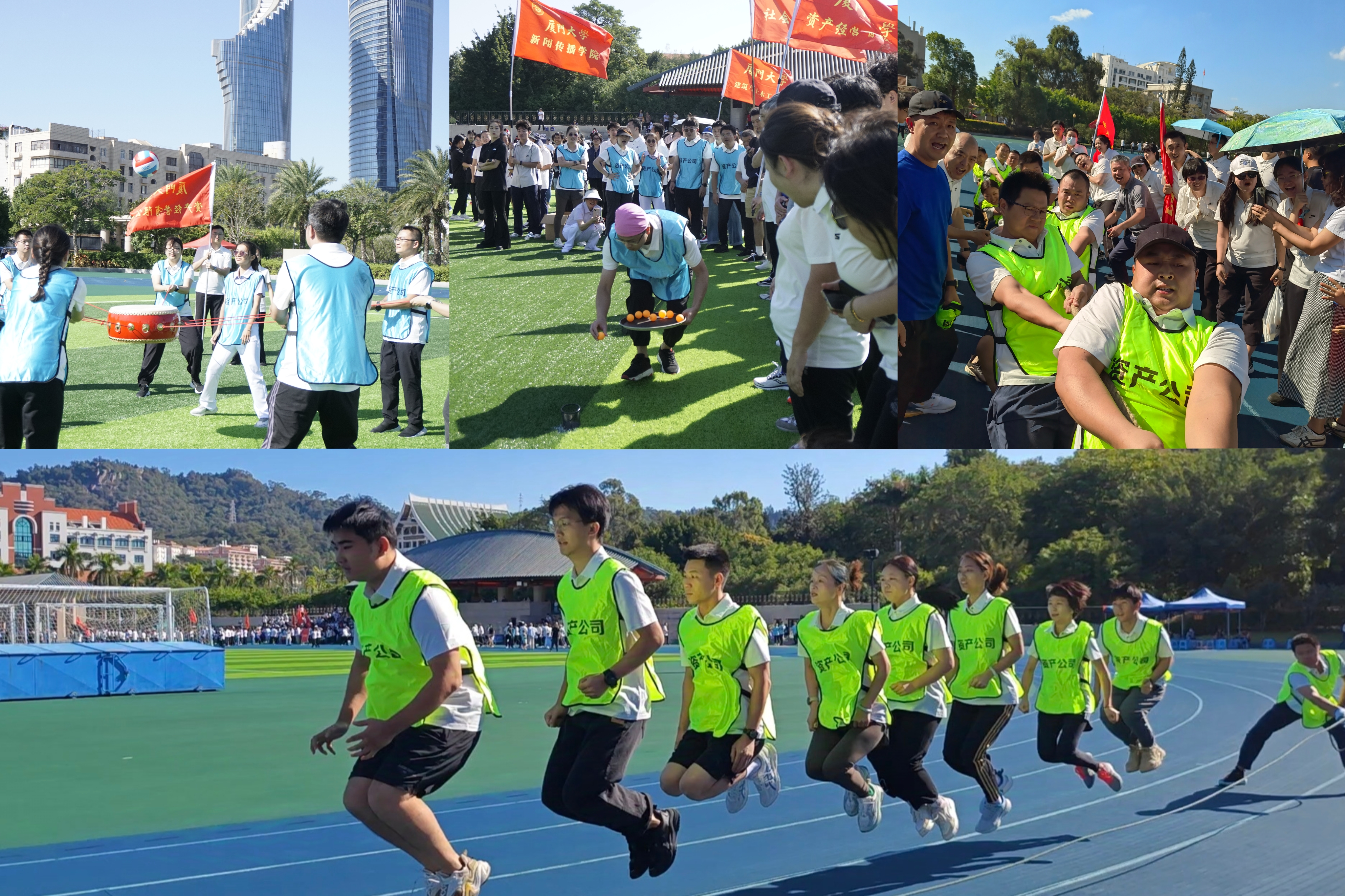 11月17日上午,秋风飒飒的演武运动场上,一阵阵欢呼声此起彼伏。厦门大学资产经营有限公司(以下简称“资产公司”)的运动健将们,正在燃动全身的每一处细胞,既拼体力又考智力,称得上是团结协作精神的完美比拼。