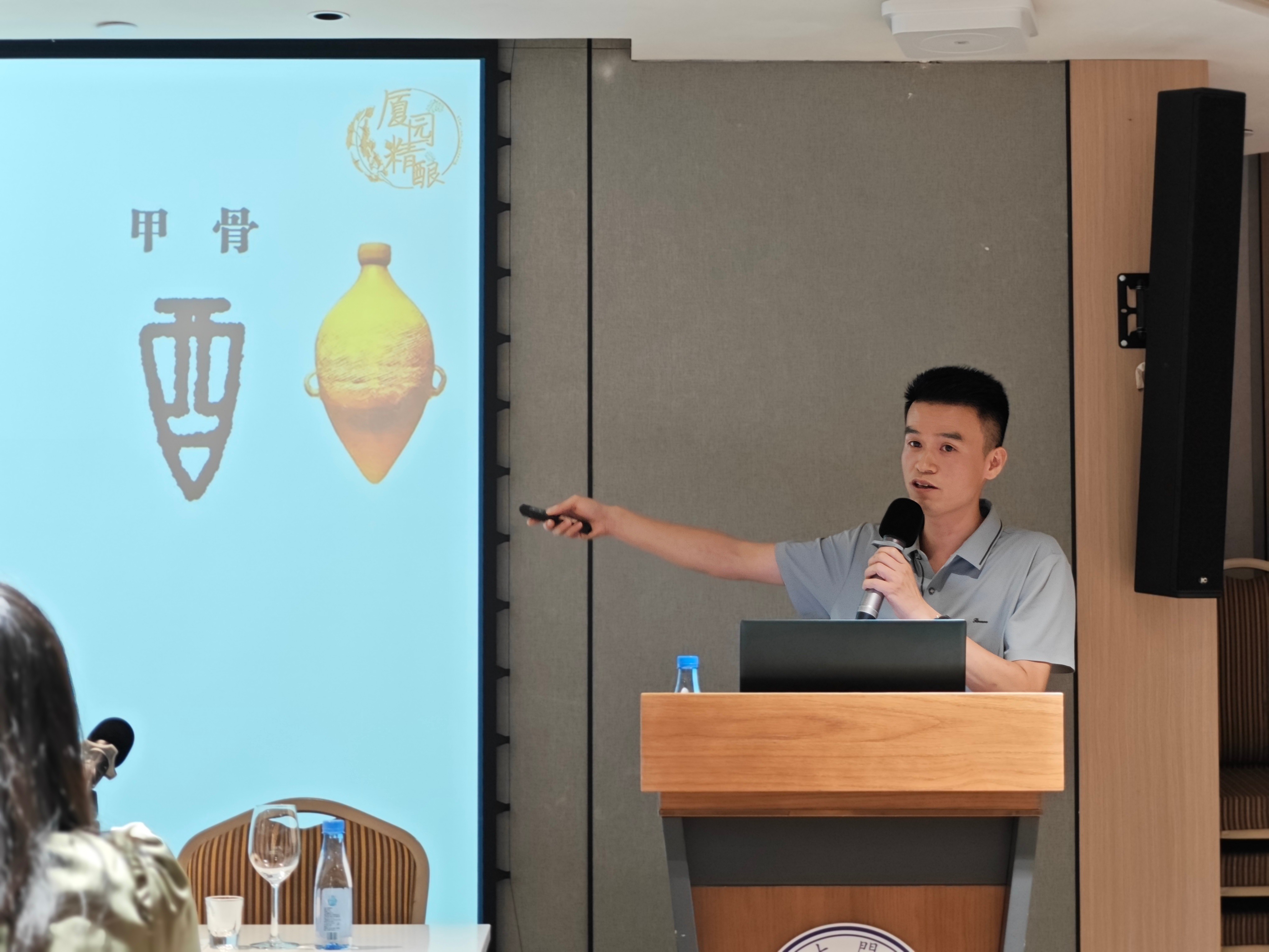 来自化学化工学院的国家科技特派员、高级实验师邵文尧从理论授课与实践品鉴两个环节,为在场的公司员工们带来了一场丰富的视觉、听觉与味觉盛宴。他从酒的分类、文化与品鉴入手,详细介绍了中华酒文化的多样性及其发展历程,并结合学校在酿酒工程领域的成果转化与产业化情况,侧重讲解了精酿啤酒酿造工坊的制作工艺和商业化策略,详细展示了团队在科技成果转化、人才培养、创新创业和推动乡村全面振兴、服务区域经济发展等方面的最新工作进展,同时从外观、香气、风味、口感等多个维度向产业员工们传授如何从专业维度品鉴精酿啤酒与葡萄酒,让大家全面了解“酒文化”的丰富内涵和历史渊源,提升文化素养与艺术鉴赏水平。