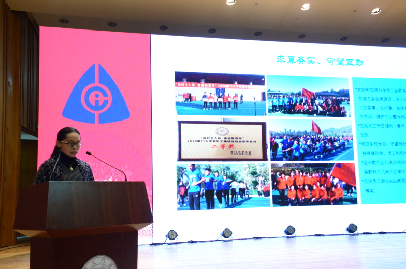 “中心”工会主席吴小昕代表工会讲话。她总结了一年来,“中心”工会在学校党委和上级工会的领导下,不断强化员工思想政治引领,持续深化工会改革创新,深入开展维权服务,充分发挥了党联系职工群众“连心桥”的重要作用。工会组织的吸引力、凝聚力、战斗力进一步增强。
