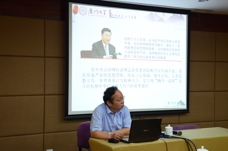 8月7日下午,学校社科处处长、教育研究院教授陈武元,应“中心”党总支邀请,在会议中心二号会议室作以“深入贯彻落实习近平总书记系列重要讲话精神 为把我校建成一流大学提供一流服务支撑”为主题的专题讲座。“中心”领导班子成员,各支部书记及全体党员参加讲座。