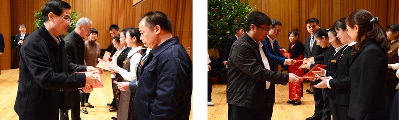 “中心”此次联欢晚会采用总结表彰与节目表演穿插的方式进行。本场晚会在热闹欢腾的双排键二重奏表演中拉开了序幕。欢快的节奏、喜庆的音符顿时点燃了现场的气氛。随后“中心”董事长邱伟杰上台致辞。他对全体员工一年来的辛勤工作表示由衷的感谢,并对“中心”新一年的发展表达美好祝愿。校团委副书记孙佳在致辞中提到,“中心”青年员工是一支积极向上、奋发有为的队伍,在学校的青年职工中有着较为突出的表现。她希望“中心”团委在新的一年里继续发光发热,为“中心”各项事业发展作出更大的贡献。