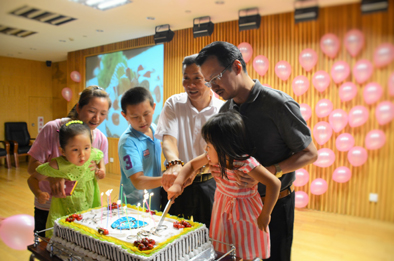 晚会最后,伴随着耳熟能详的《生日歌》,主持人将生日蛋糕缓缓推上舞台。总经理朱子申、常务副总经理黄镭一起为寿星们送上生日祝福,并与寿星们共同切开生日蛋糕。晚会也在祥和喜庆的氛围里落下了帷幕。