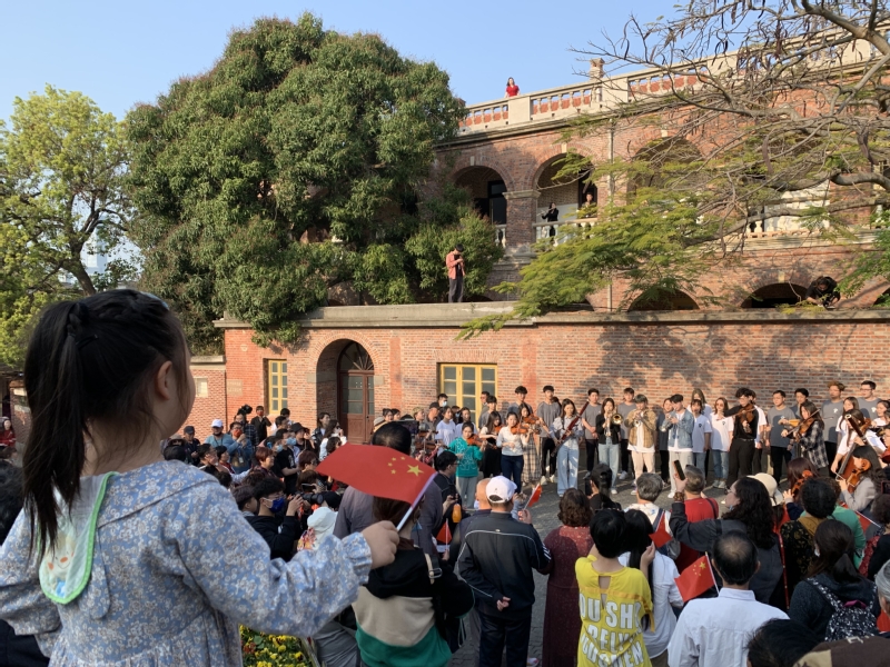 3月27日下午,由国际学术交流中心主导发起、艺术学院、新闻传播学院师生教工共同参与的百年校庆原创歌剧《陈嘉庚》快闪活动点燃美丽的琴岛鼓浪屿,全体演职人员在百年校庆倒计时10天的特殊日子里、以形式别致的快闪活动向母校献上最真挚的生日祝福,向伟大的中国共产党的百岁华诞献礼。